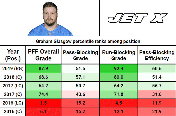 Glasgow offers excellent versatility and run-blocking that would have been great assets towards kick-starting the Jets’ offensive line rebuild.