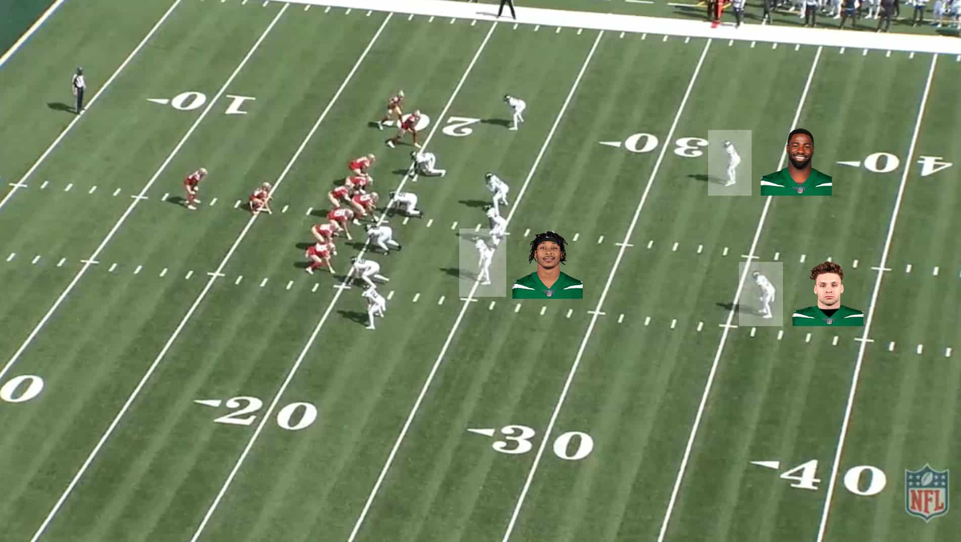 For some strange reason, the Jets put three safeties on the field against the Niners’ base look.