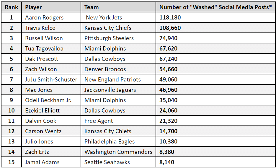 A study by Free Bets analyzed social media posts on X, Instagram, and Reddit since the 2023 preseason. The social listening tool Brandwatch was used to find the posts about each player. This formula was used: “[INSERT NAME]” AND (washed OR finished OR fraud).