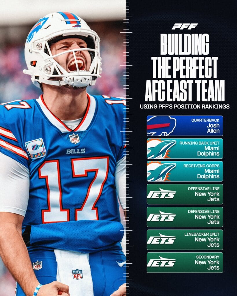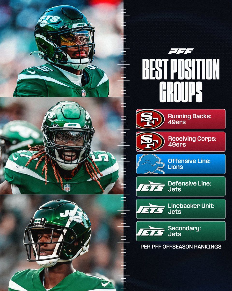 PFF thinks the Jets have the No. 1 unit at all three levels of the defense. They also have the Jets’ offensive line ranked fifth-best in the NFL, making it their top-ranked unit in the AFC East.