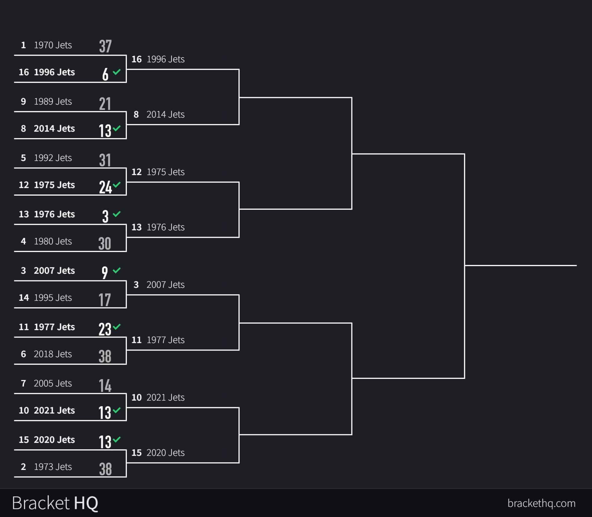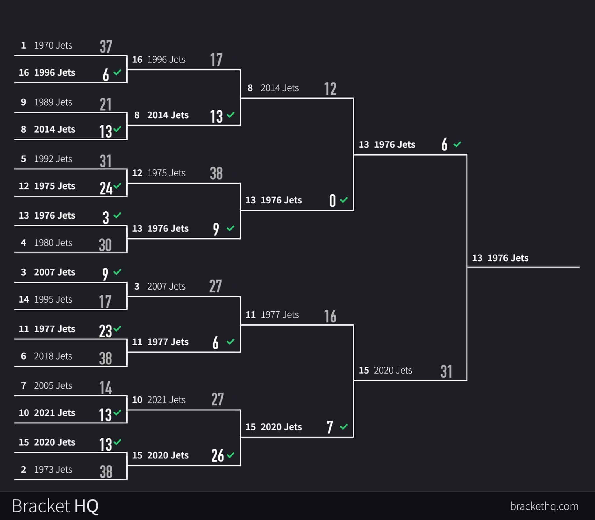 (13) 1976 Jets vs. (15) 2020 Jets