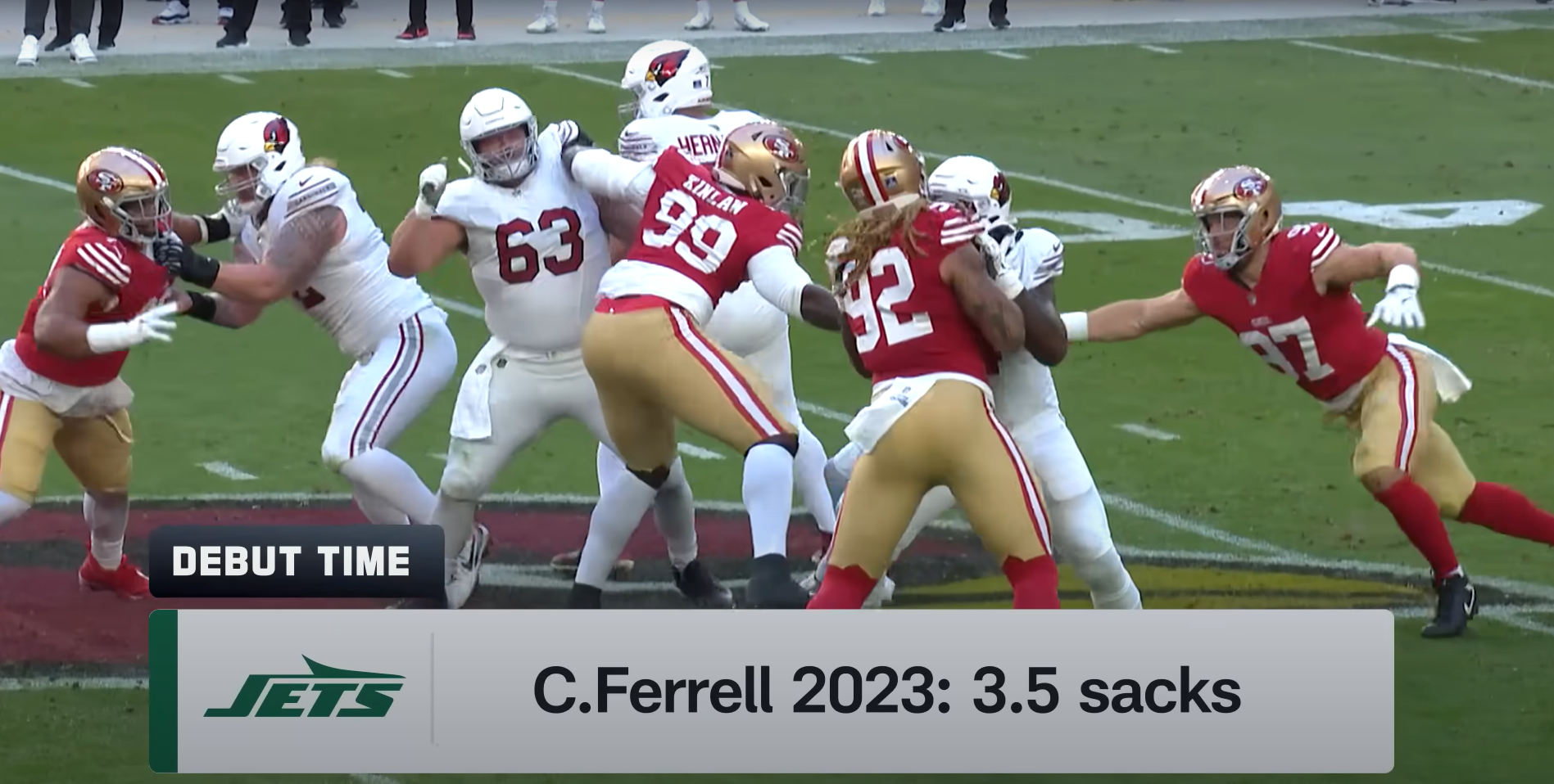 Next, while discussing the addition of Javon Kinlaw, the graphic showed Clelin Ferrell. Both are defensive linemen selected in the first round who played with the 49ers in 2023 and finished with 3.5 sacks, so maybe this mix-up is more understandable.