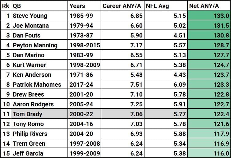 Here are the top 15 quarterbacks in era-adjusted ANY/A.